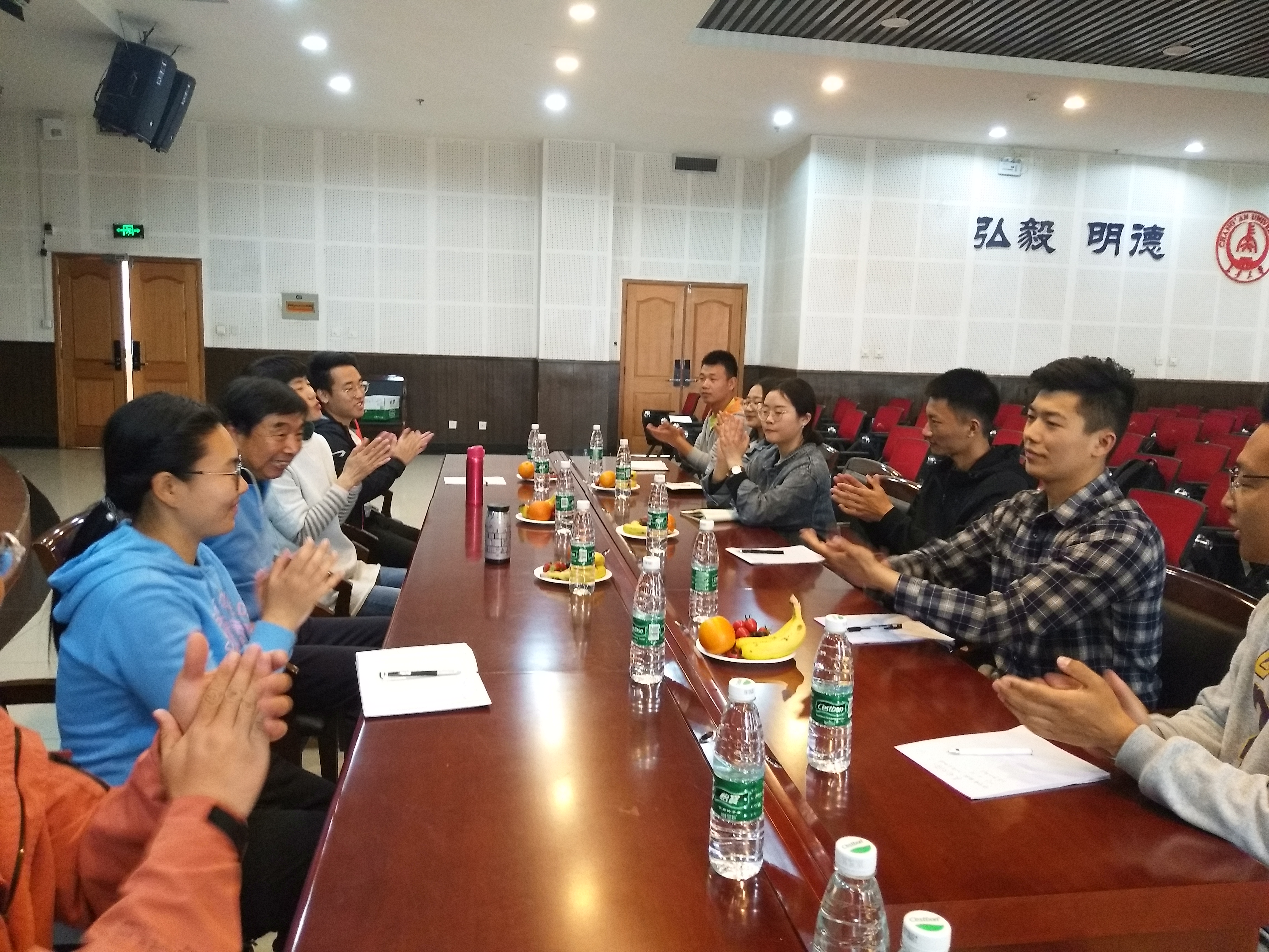 4月15日下午12:40,体育系“一院一品”系列活动之师生座谈会在大学生活动中心三楼多功能厅举办。参加本次活动的有体育系教授许同海老师、体育系辅导员马雪明老师、杨永勃老师及各年级学生代表,本次活动由体育系党总支副书记陈沛老师主持。