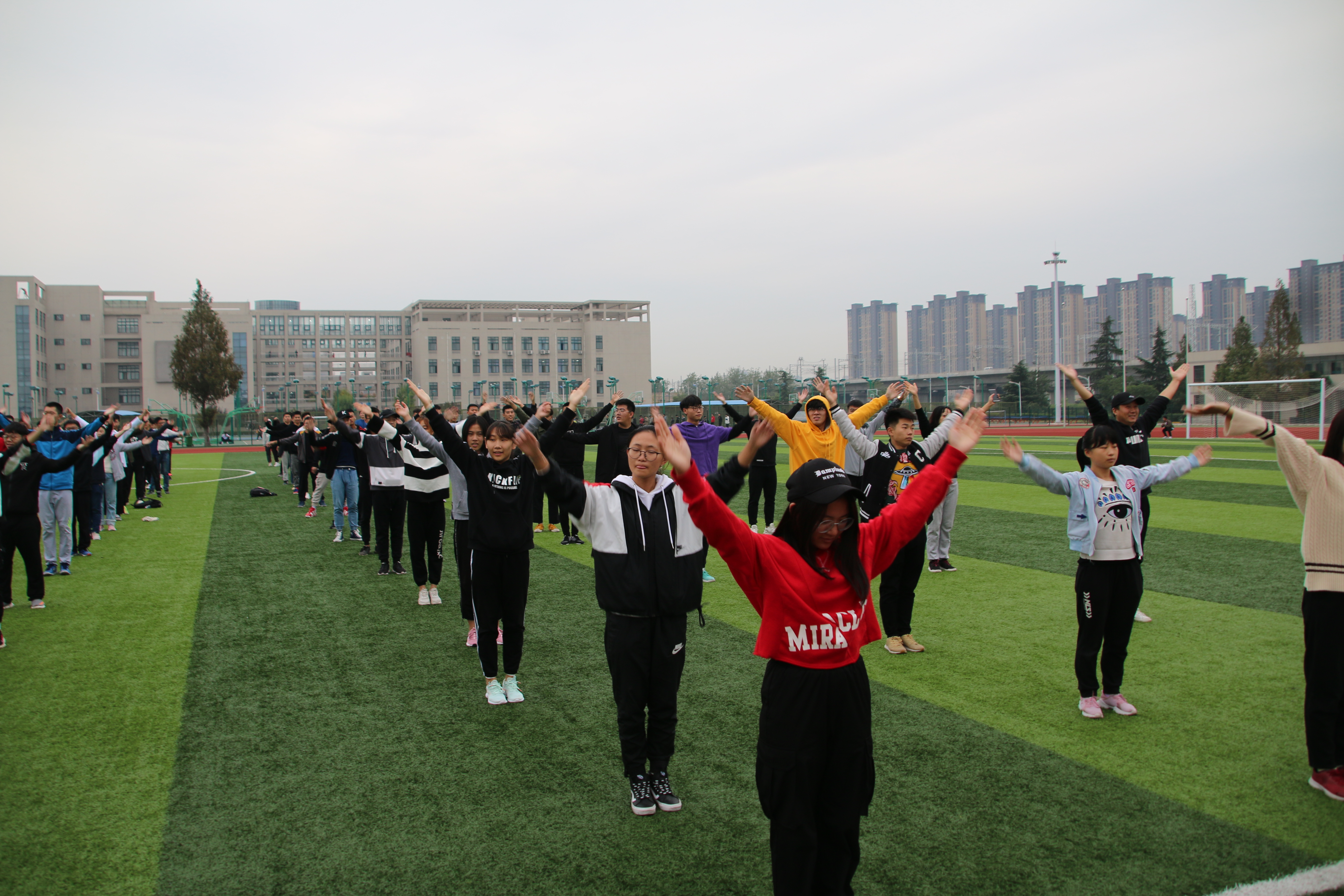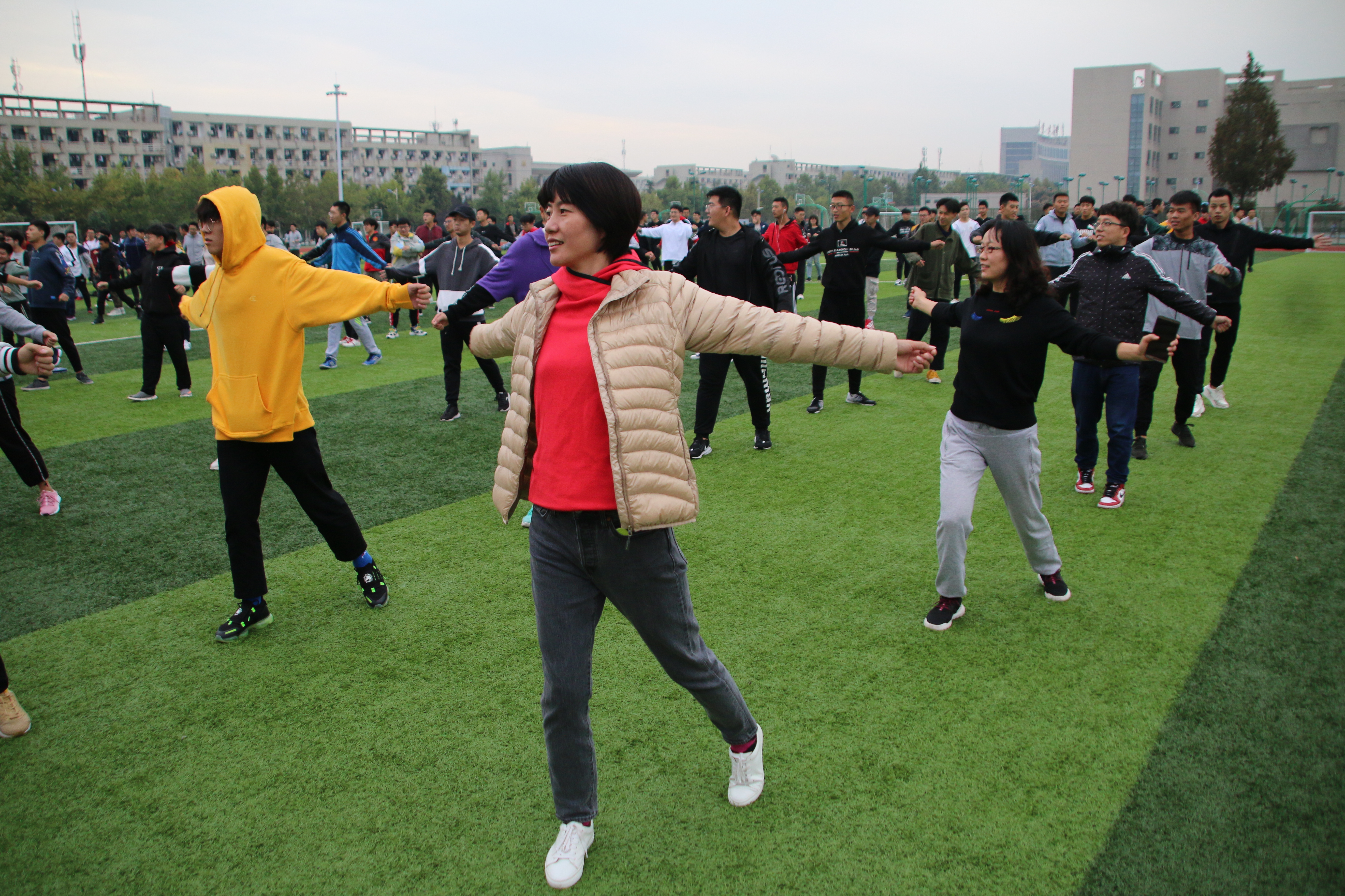 在火红的金秋十月,为倡导健康生活,展现学生体育风采,体育系、工科实验班、民族预科班全体学生于10月11日早上七点半在西区体育场联合举办了“渭水七点半·体育日”活动。体育系党总支副书记陈沛、2018级班主任李红果、2019级班主任任刚、工科试验班辅导员伊力夏提·奥斯曼、体育系辅导员王志凯参加本次活动。