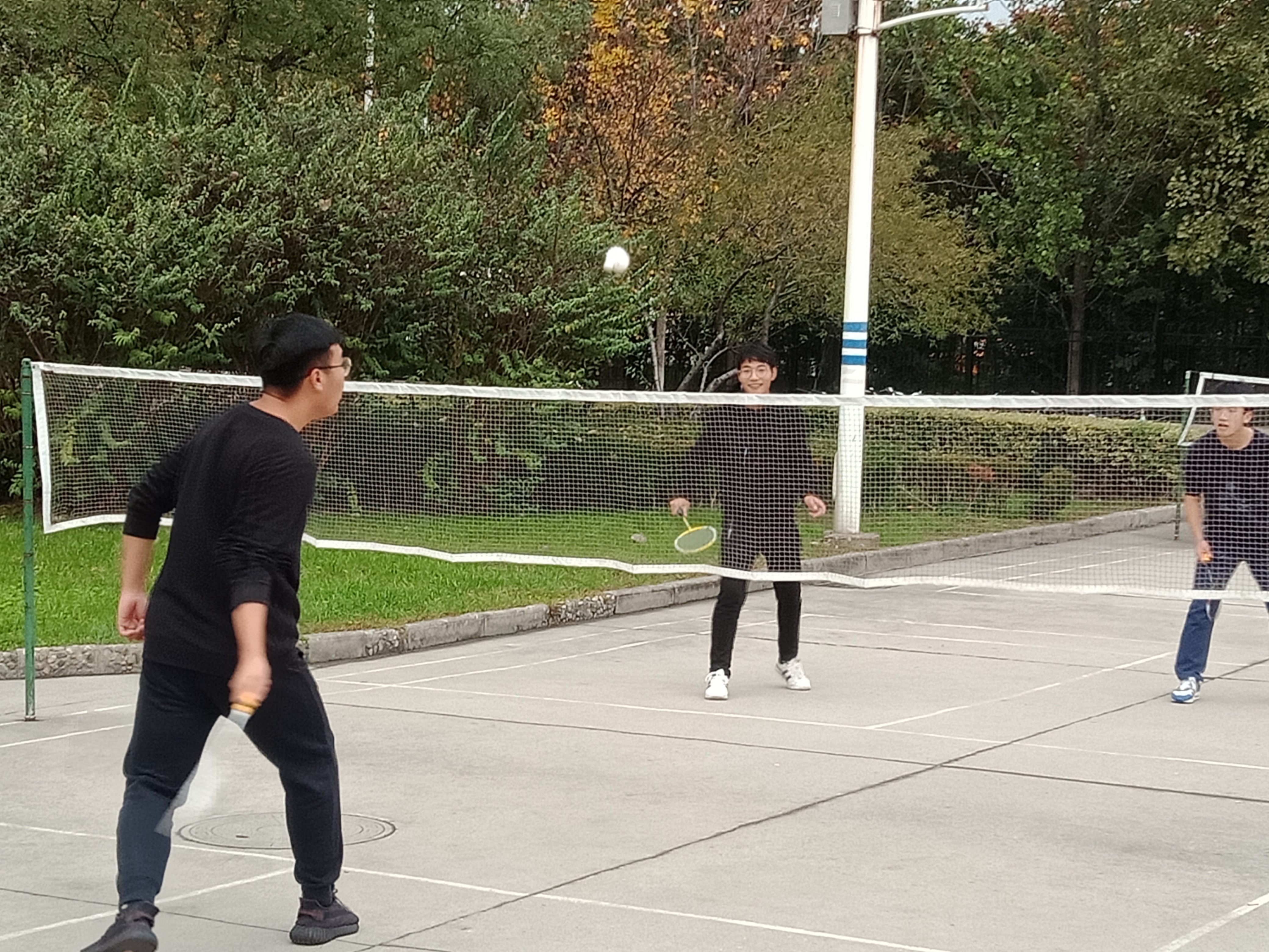 一日之计在于晨,7点20,同学们迎着微凉的秋风开始晨跑,在雷晓薇老师带领大家做了一套热身操后,同学们进行了四个趣味小游戏:老鹰捉小鸡,足球运动与射门,跳大绳,羽毛球赛。老师和同学们都积极的参与,乐在其中。