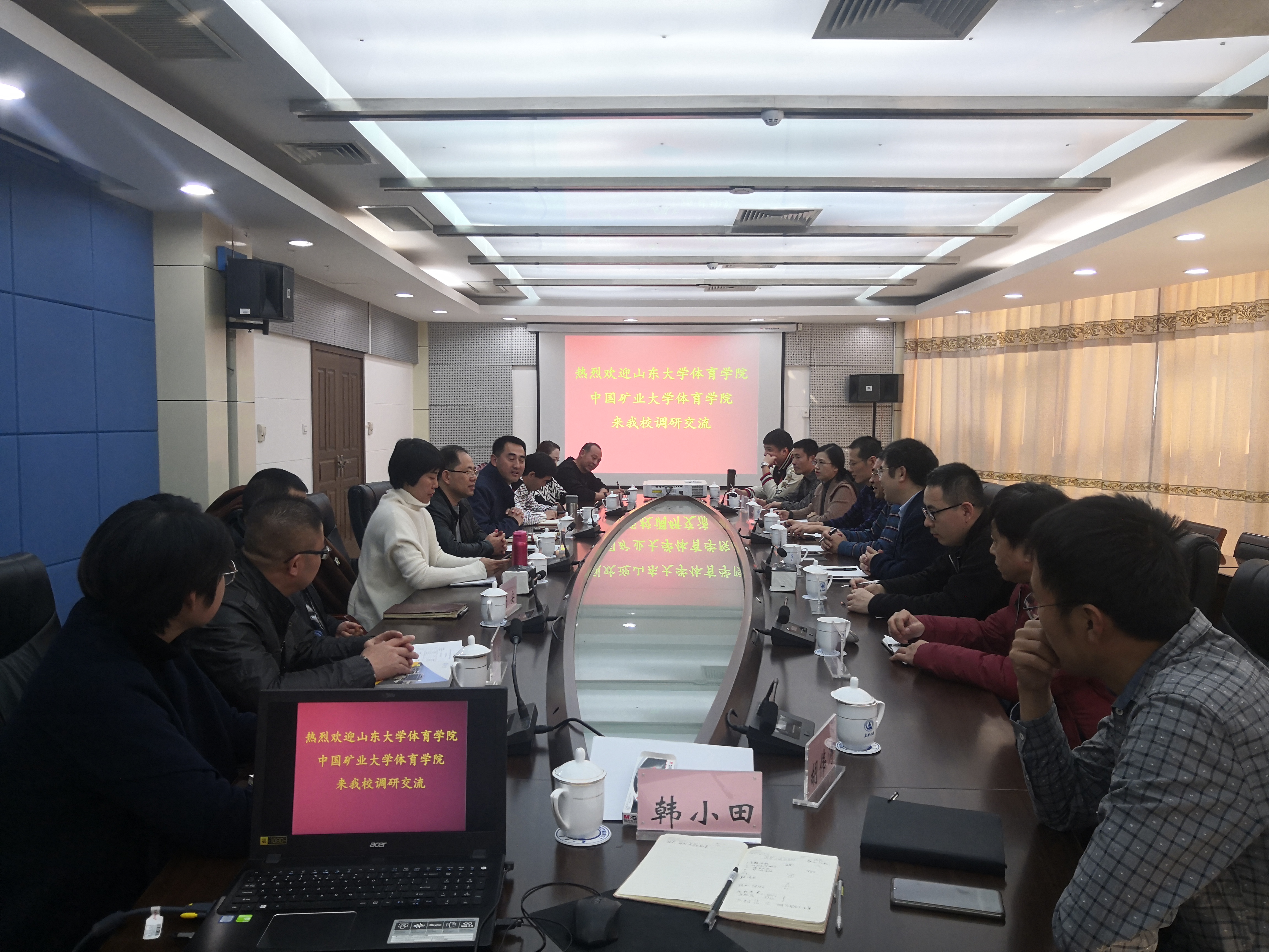 11月21日下午,在渭水校区会议中心第三会议室,taptap点点188(系)与山东大学、中国矿业大学召开了校际体育工作交流会。taptap点点188(系)党总支书记张保兴、主任杭兰平、党总支副书记陈沛、副主任李生民、场馆管理中心主任汤安等12人出席。