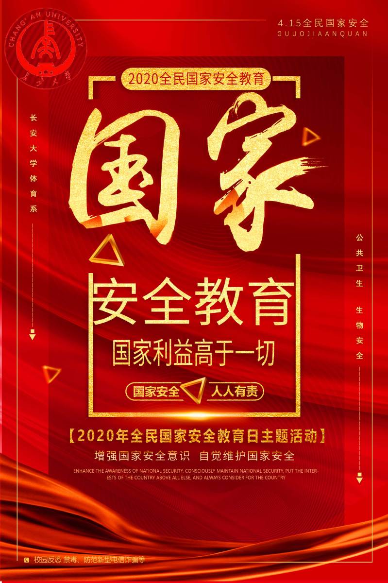 2020年4月15日是我国第五个“全民国家安全教育日”,为进一步增强学生国家安全意识,深入学习贯彻以习近平同志为核心的党中央关于疫情防控工作的决策部署,突出公共卫生安全、生物安全等宣传教育内容,引导学生将国家安全观贯彻抗疫全过程,履行应对突发公共事件的职责义务,提升维护国家安全的自觉性和主动性,4月13日至15日,体育系举办了一系列“全民国家安全教育日”宣传教育活动.