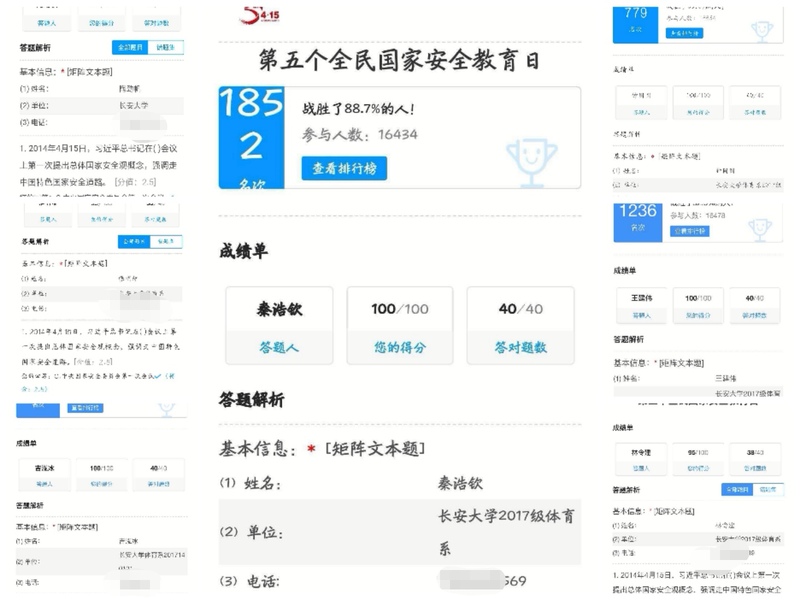 2017级开展国家安全教育线上答题活动,答题的形式学习安全教育知识,提高学法、懂法、守法、用法的意识,牢固树立总体国家安全观。仔细想来,国家安全又何尝不是检验防控与治理能力的一张“考卷”呢!在这场保障国家安全的考试中,没有局外人,而每一题皆是“必答题”,只有每个人都行动起来,才能确保国家安全考题“不失一分”。