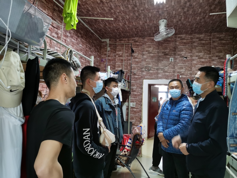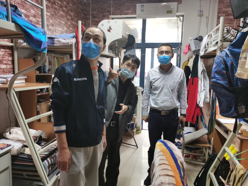 5月8日下午体育系党总支书记唐少君、副书记栾义峰、副主任米战带领全体辅导员,深入学生宿舍,进一步了解返校情况及考研、工作情况,叮咛学生要潜心学习,完成好毕业论文(设计),同时为同学送来防护物资,传递温暖之情,强调严格遵守学校及taptap点点188(系)的规章制度,做好坚实防疫工作。