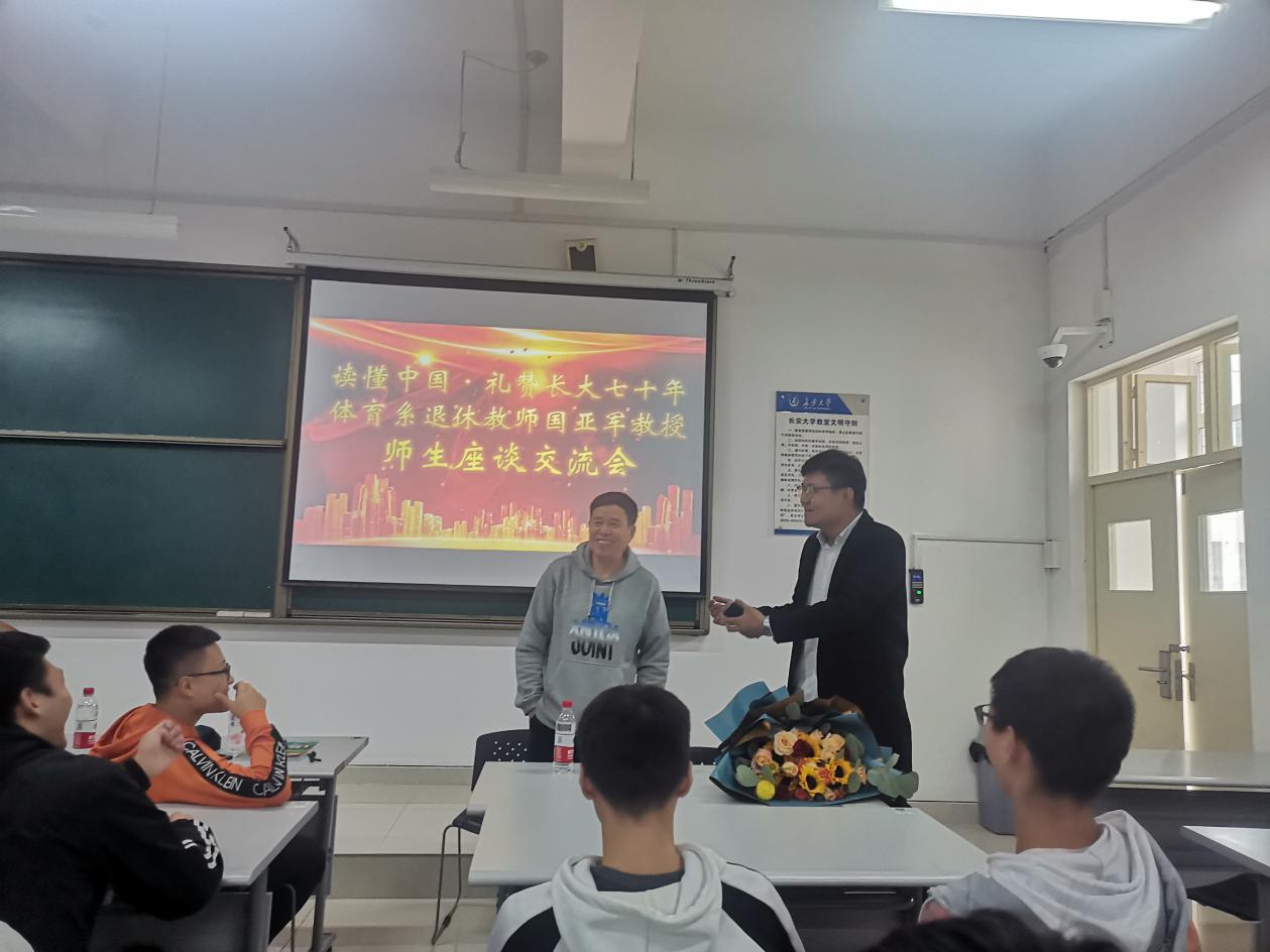 国老师:我很喜欢体育,也很喜欢体育系的学生,他们给我的印象就是很聪明、很活泼,我很喜欢与他们交流,并且在我看来他们也是很自律的。对于他们,要多表扬、多鼓励、多赞美。