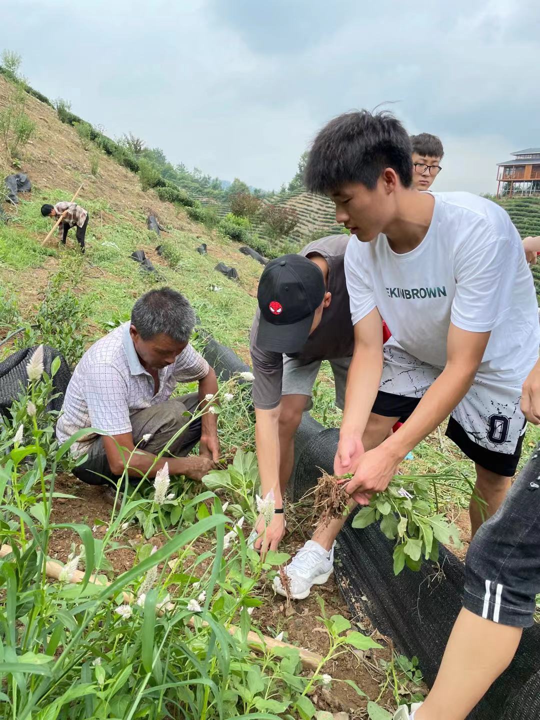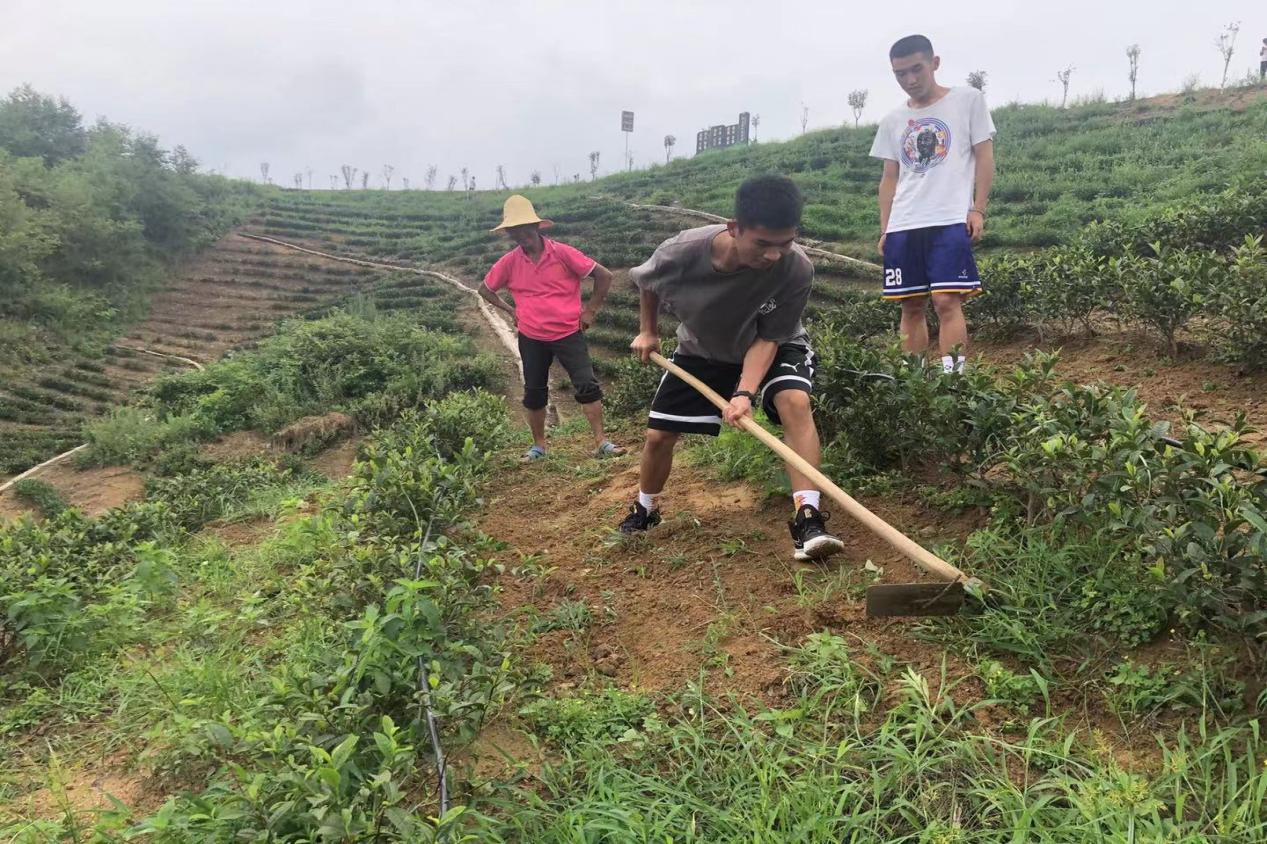 实践队员与当地茶农一起为茶园除草、帮助茶农翻土。用实际行动参与到茶叶种植实践中来。亲身劳动体验农民的不易。