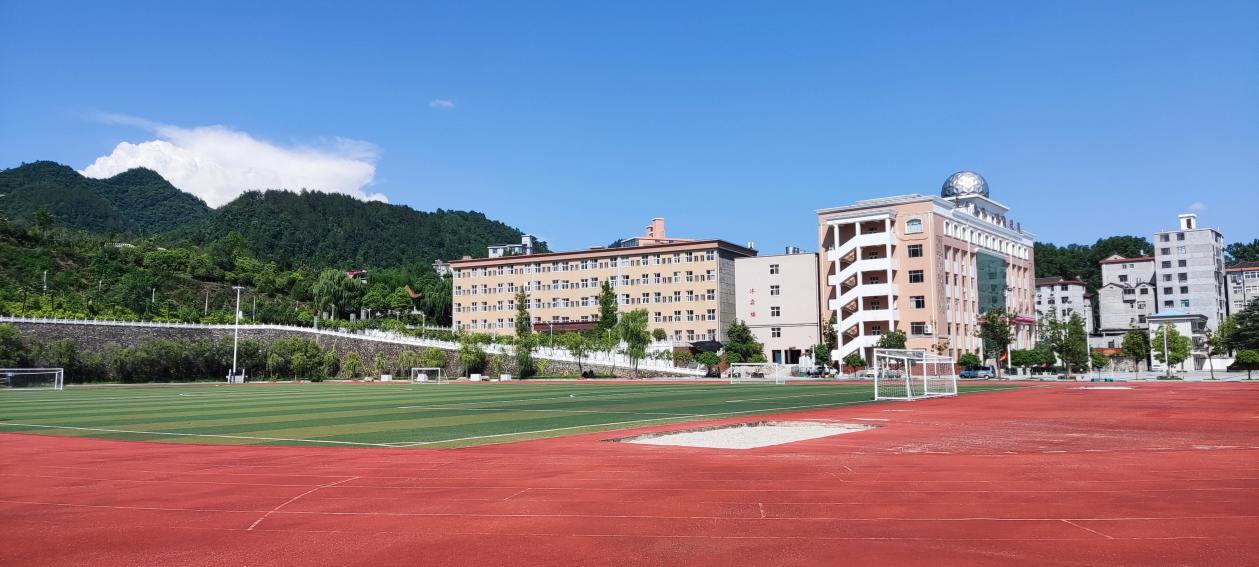 图为商南县高级中学的田径运动场和足球场,场地十分干净整洁,红色的塑胶跑道看起来赏心悦目,绿色的足球场绿茵重重,学校面貌焕然一新!