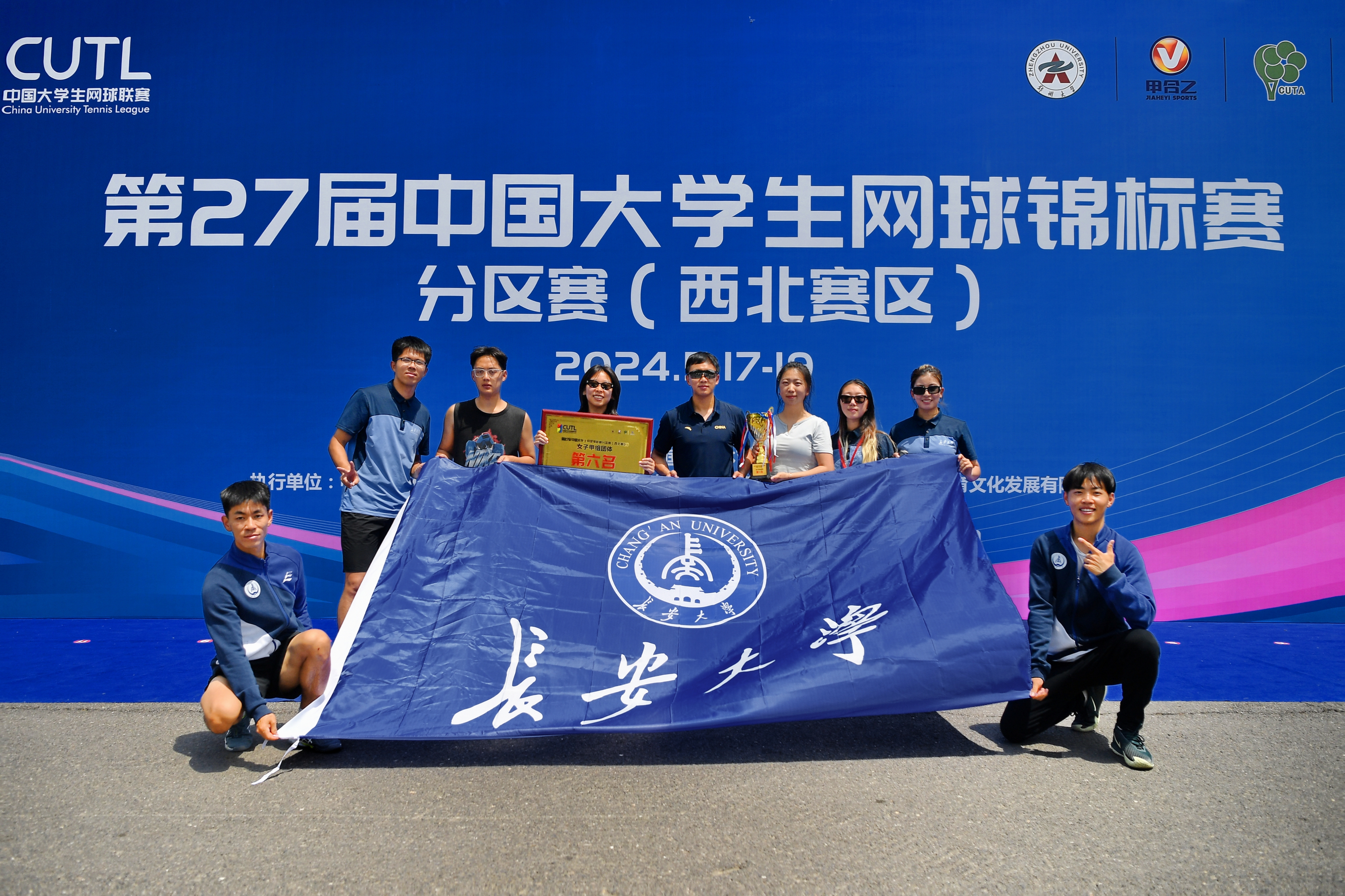 5月17日,第27届中国大学生网球锦标赛分区赛(西北赛区)在郑州大学拉开帷幕,来自西北赛区20所高校150余名运动员进行了为期三天的激烈角逐。我校网球队8名运动员在黄一平老师的带领下,不畏强敌,团结一致,最终获得了男子甲组团体第一名、女子甲组团体第六名的好成绩。男团甲组成功晋级全国总决赛,时隔七年再次登顶西北第一。