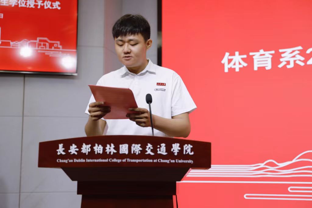 体育系党总支书记唐少君发表致辞,他向即将毕业的同学们表示热烈的祝贺。并嘱托到:“第一,常怀奉献之心,将小我融入大我。第二,常怀进取之心,将躺平变成跑赢。第三,常怀感恩之心,将帮助化为动力。”希望毕业生们都能用情怀、本领和智慧擦亮“长大体育人”这个光荣的称号,以实际行动写好奋进之笔,向时代、向祖国、向母校交出优秀答卷!