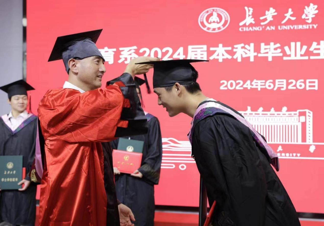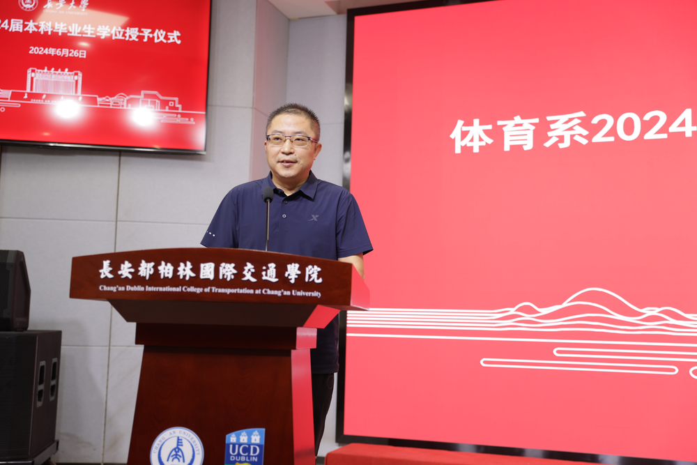 2024年6月26日9:30,体育系在北校区WH1404长安都柏林国际交通学院报告厅举行2024届本科生毕业典礼暨学位授予仪式,体育系党总支书记唐少君、taptap点点188(系)主任杭兰平,副主任米战、体育场馆管理中心主任马磊,体育系党总支委员康冬、校团委社团文体部主任张腾,部分师生代表、学生家长以及2024届全体本科毕业生参加典礼。典礼由体育系党总支副书记张侠主持。