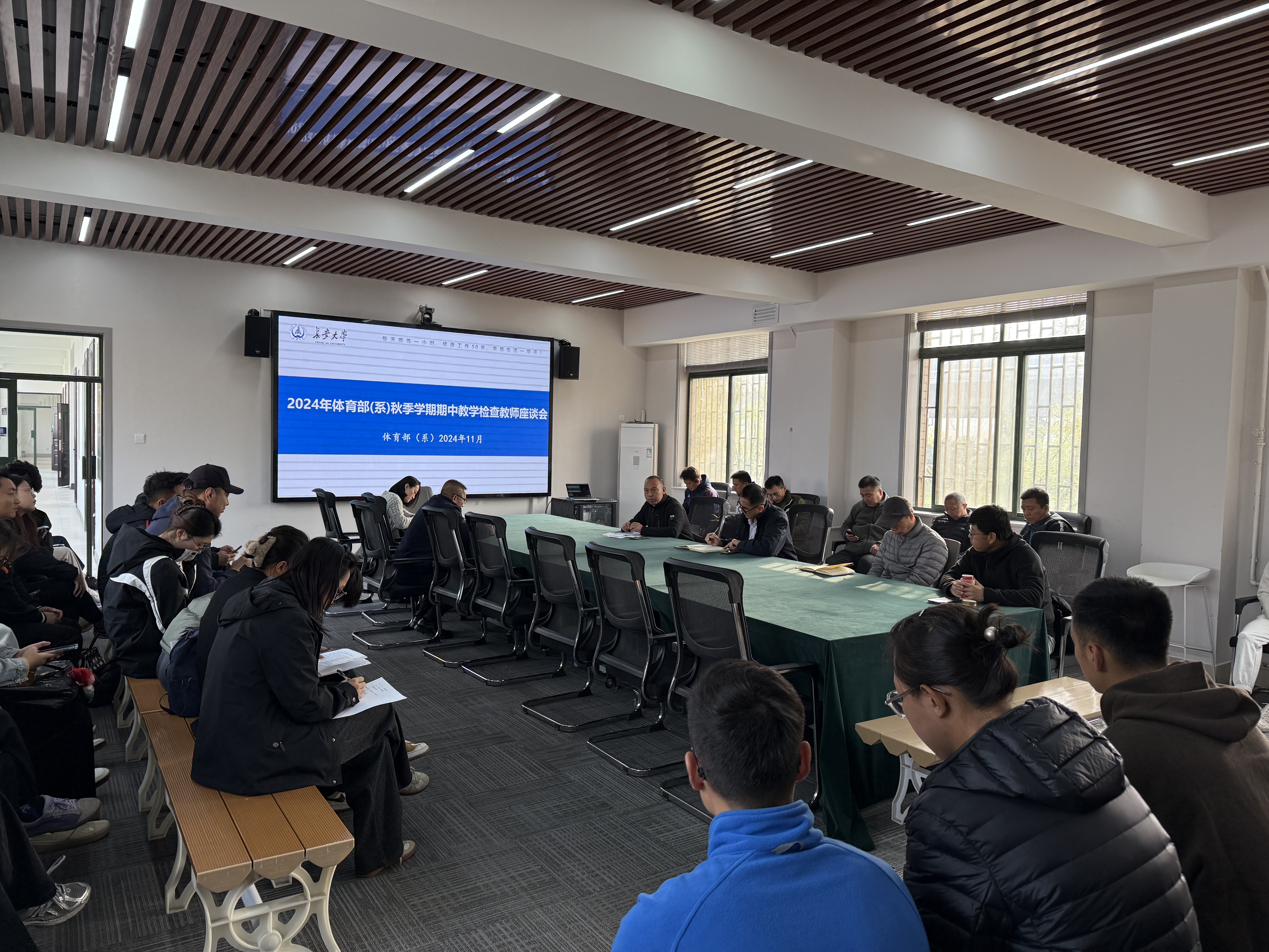 座谈会上,taptap点点188公共教学办公室主任冯瑞,社体办公室主任耿廷芹,体测中心办公室主任何乐根据近期学校教学工作和体测工作重点要求,对近期的教学和体测工作重点进行梳理发言。