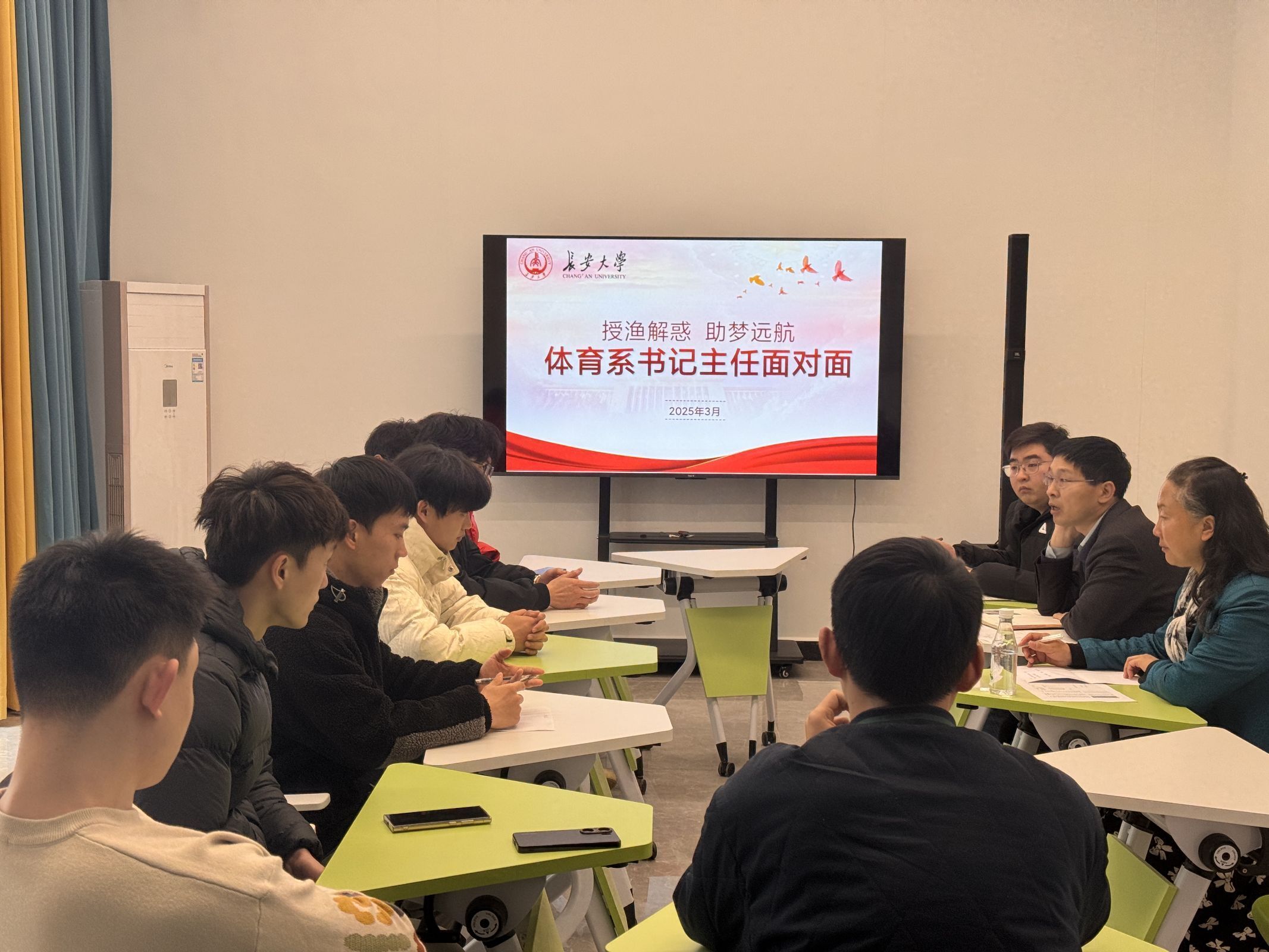 为落实就业工作“一把手工程”,做好2025届毕业生就业工作,进一步做好就业帮扶。体育系在鸿渐园园区会议室召开“授渔解惑,助梦远航”书记主任面对面就业师生座谈会,系党总支书记唐少君、副书记张侠,毕业生辅导员杨建华及部分毕业生参加座谈会。