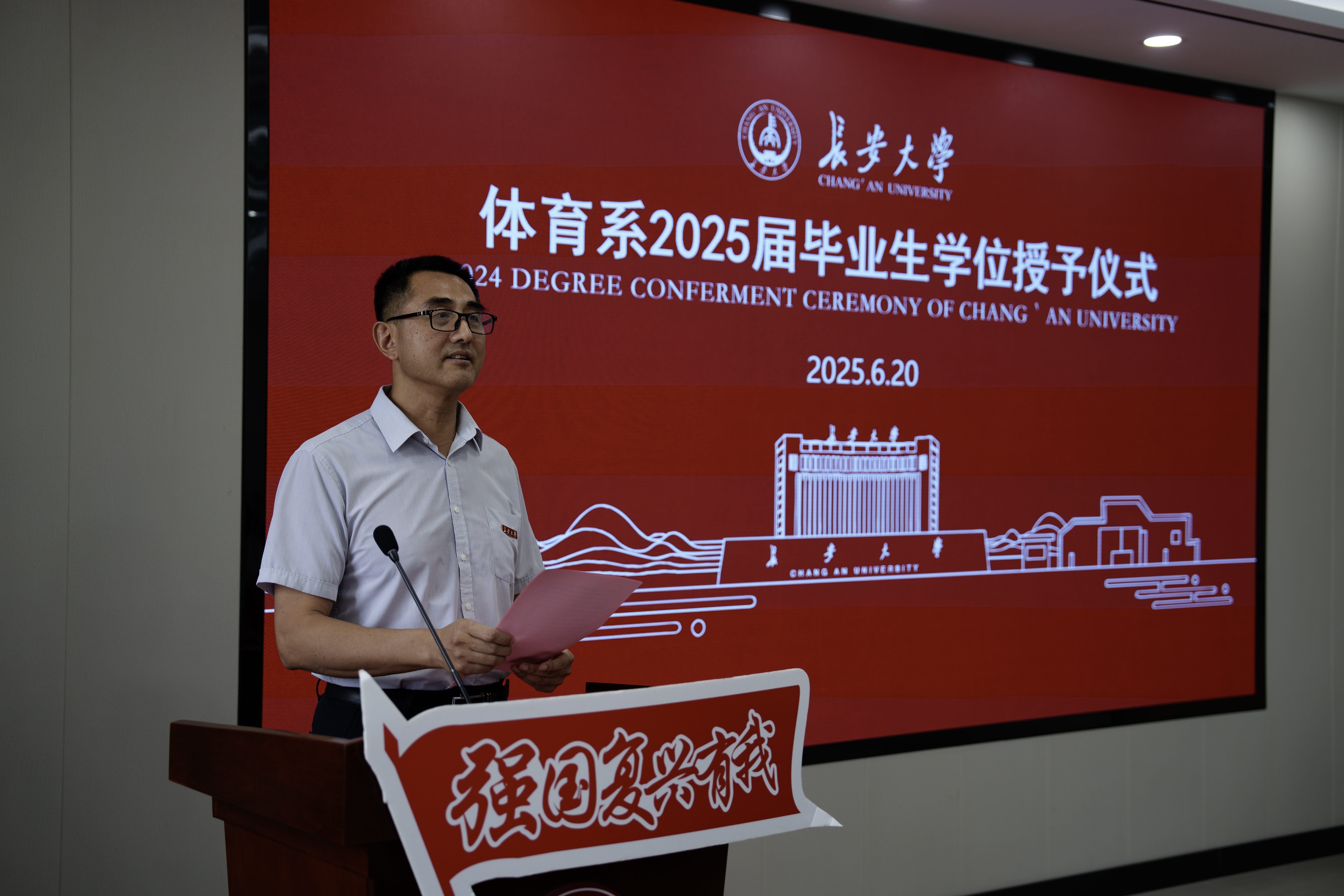 6月20日下午,taptap188官网体育系2025届本科生毕业典礼暨学位授予仪式在北校区建筑工程学院E604报告厅隆重举行。副校长黎开谊,体育系党总支书记唐少君,taptap点点188(系)主任杭兰平,副主任米战、杨清轩,体育场馆管理中心主任马磊及师生代表共同见证2025届毕业生的重要时刻。典礼由体育系党总支副书记张侠主持。