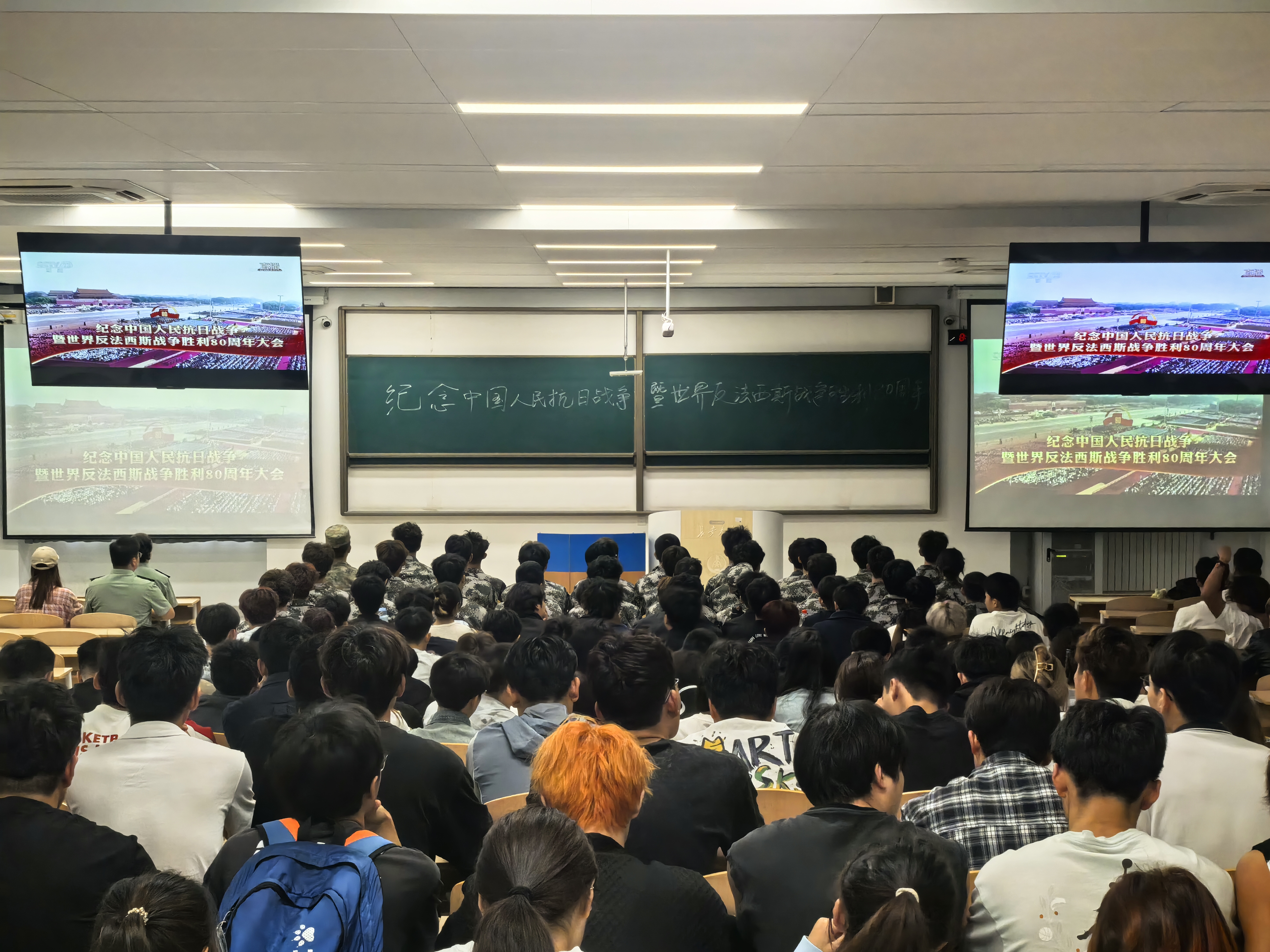 9月3日,纪念中国人民抗日战争暨世界反法西斯战争胜利80周年大会在北京天安门广场隆重举行。我部(系)组织全体师生分别在taptap点点188(系)二层会议室、WH1103教室集中观看了大会现场直播。