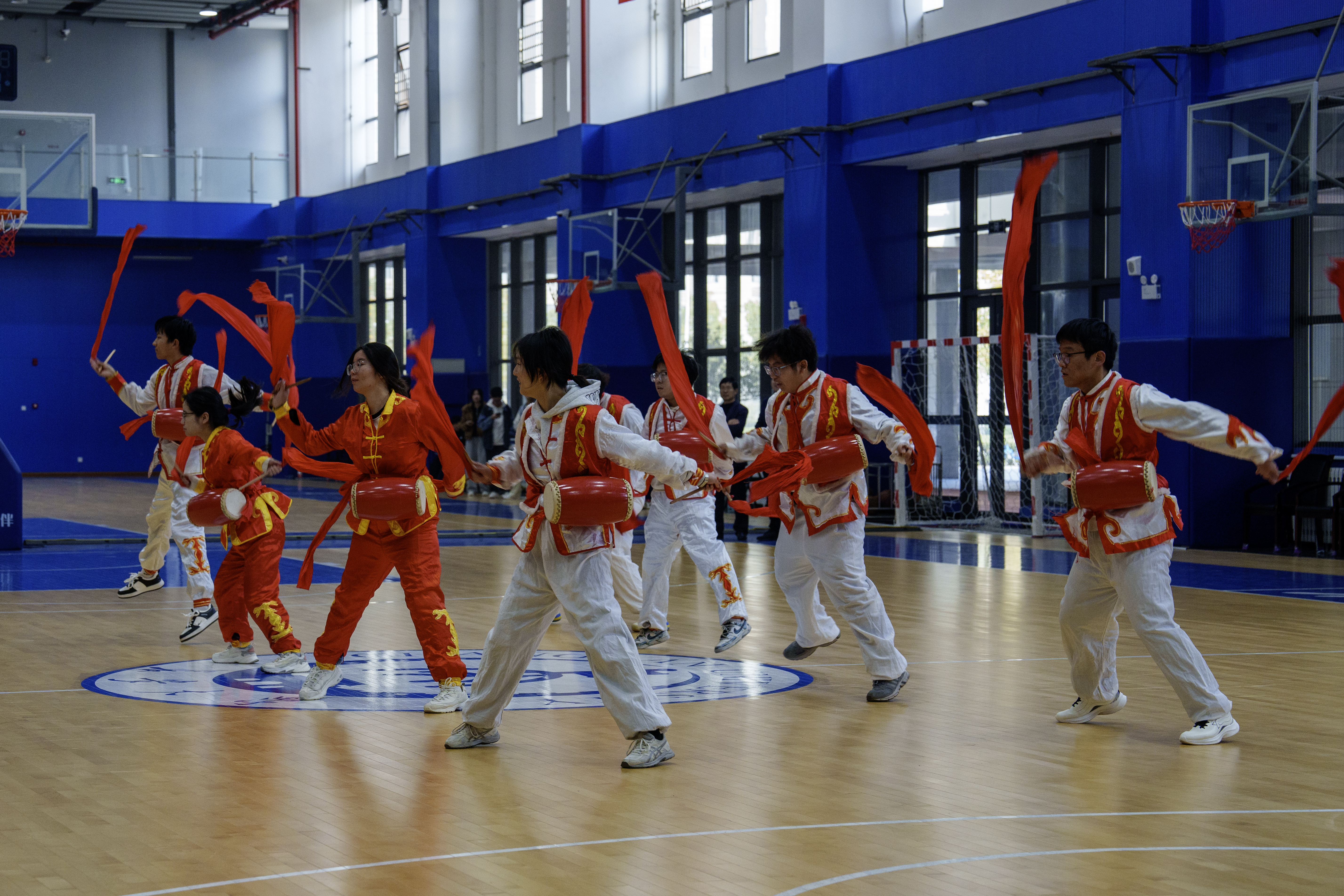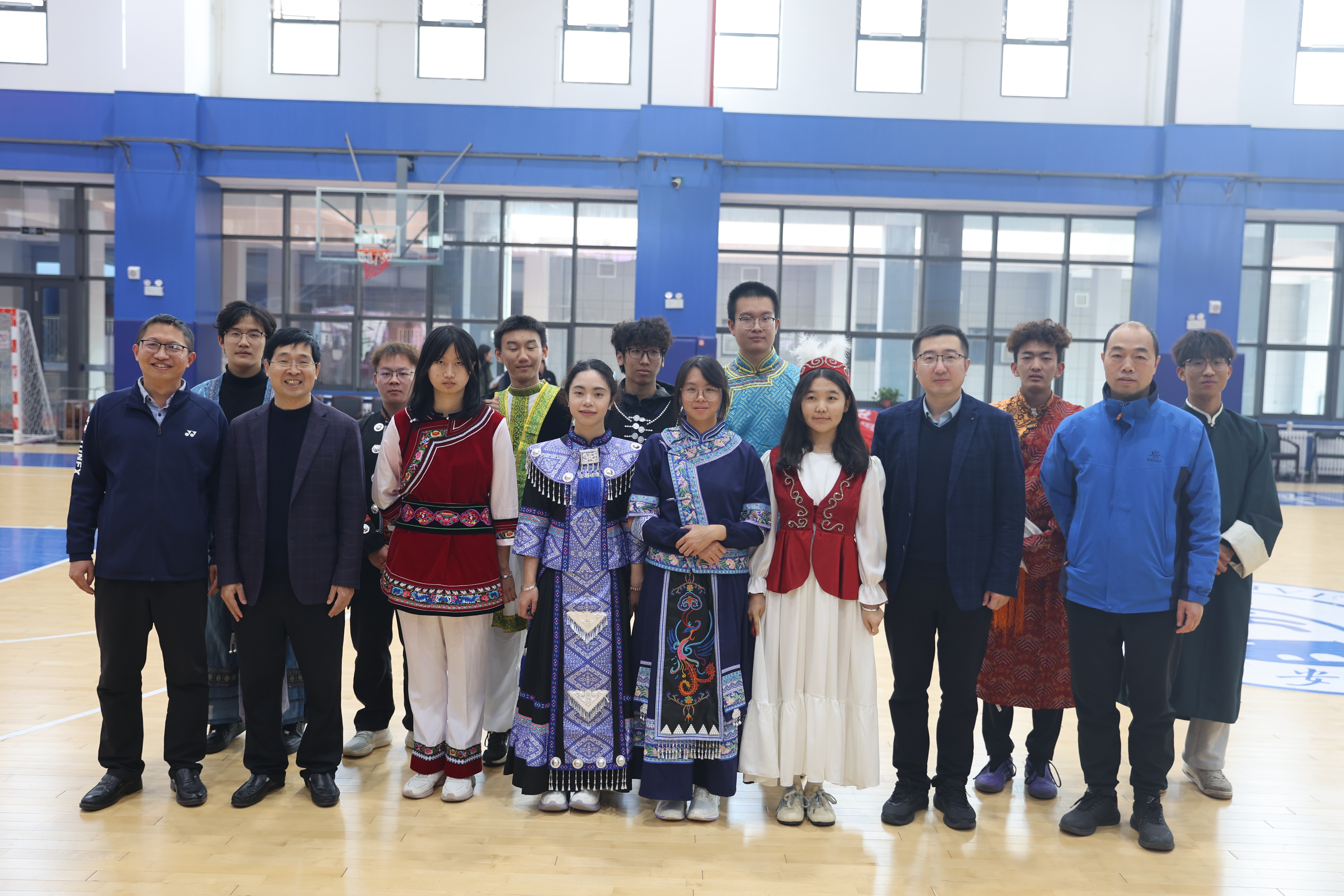 随后,黄土地文化社带来被誉为"天下第一鼓"的安塞腰鼓,激昂的鼓点、刚劲的舞姿,瞬间点燃全场!校舞龙舞狮运动队首次正式亮相,南狮威武矫健,长龙翻腾起舞,将中华传统技艺的魅力展现得淋漓尽致!初生龙狮队踏鼓而出,长龙九节盘旋如云,南狮高桩一跃采青,观众席爆出雷鸣般喝彩。此外,藏族歌曲、蒙古族马头琴演奏、各民族服饰走秀等精彩节目轮番上演,为观众带来一场视听盛宴,也将民族团结的氛围推向高潮!